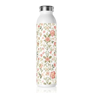 Meadow Trail Slim Water Bottle — Vintage Pink Rose Pattern Stainless Bottle