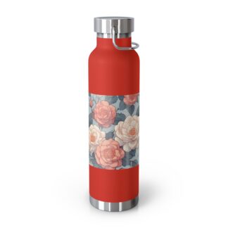 22oz Floral Copper Vacuum Bottle — Insulated Water Bottle with Vintage Rose Design