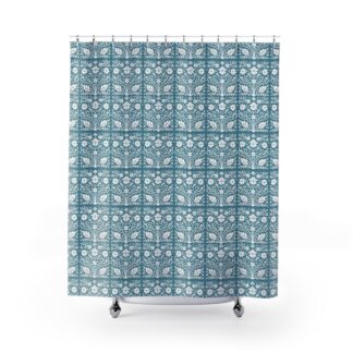 Vintage-Inspired Botanical Tile Shower Curtain — Drape Your Bath in Artistic History