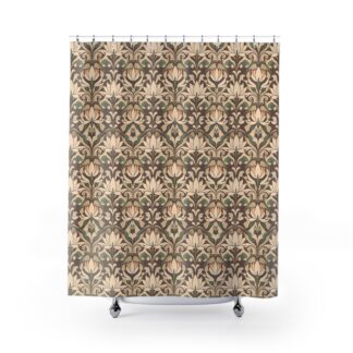 Vintage Floral Shower Curtain — Earthy Art Nouveau Lotus Pattern Water Lilies in Bronze Tones