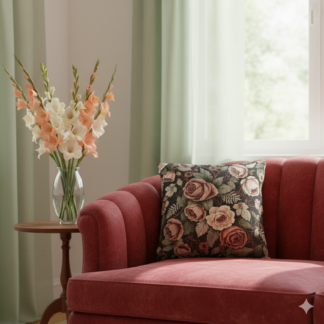 Vintage Floral Woven Pillow – Elegant Rose Design for Cozy Home Decor
