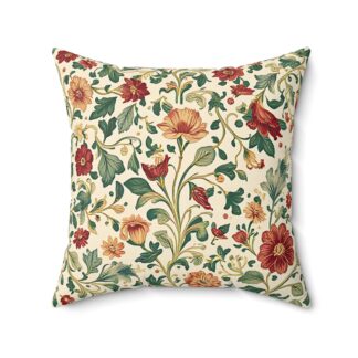 Vintage Floral Throw Pillow — Retro Botanical Suede Accent Pillow Softens Spaces With Timeless Floral Romance