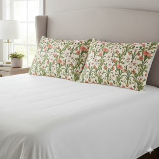 Floral Vintage Microfiber Pillow Case — Pink & Green Art Nouveau Botanical Pattern
