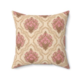 Vintage Pink Floral Damask Pillow – Faux Suede Square Throw Cushion