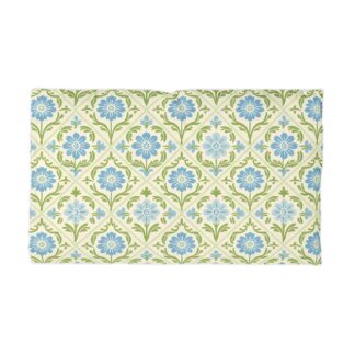 Floral Tile Microfiber Pillow Case — Blue & Green Patterned Decorative Pillow Cover