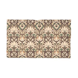 Brown Art Nouveau Lotus Pillow Case — Dreaming Upon Silken, Soft Water Lilies