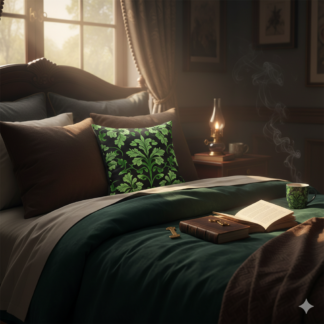 Victorian Midnight Velvet-Soft Pillow — Elegant Green Damask Throw Pillow
