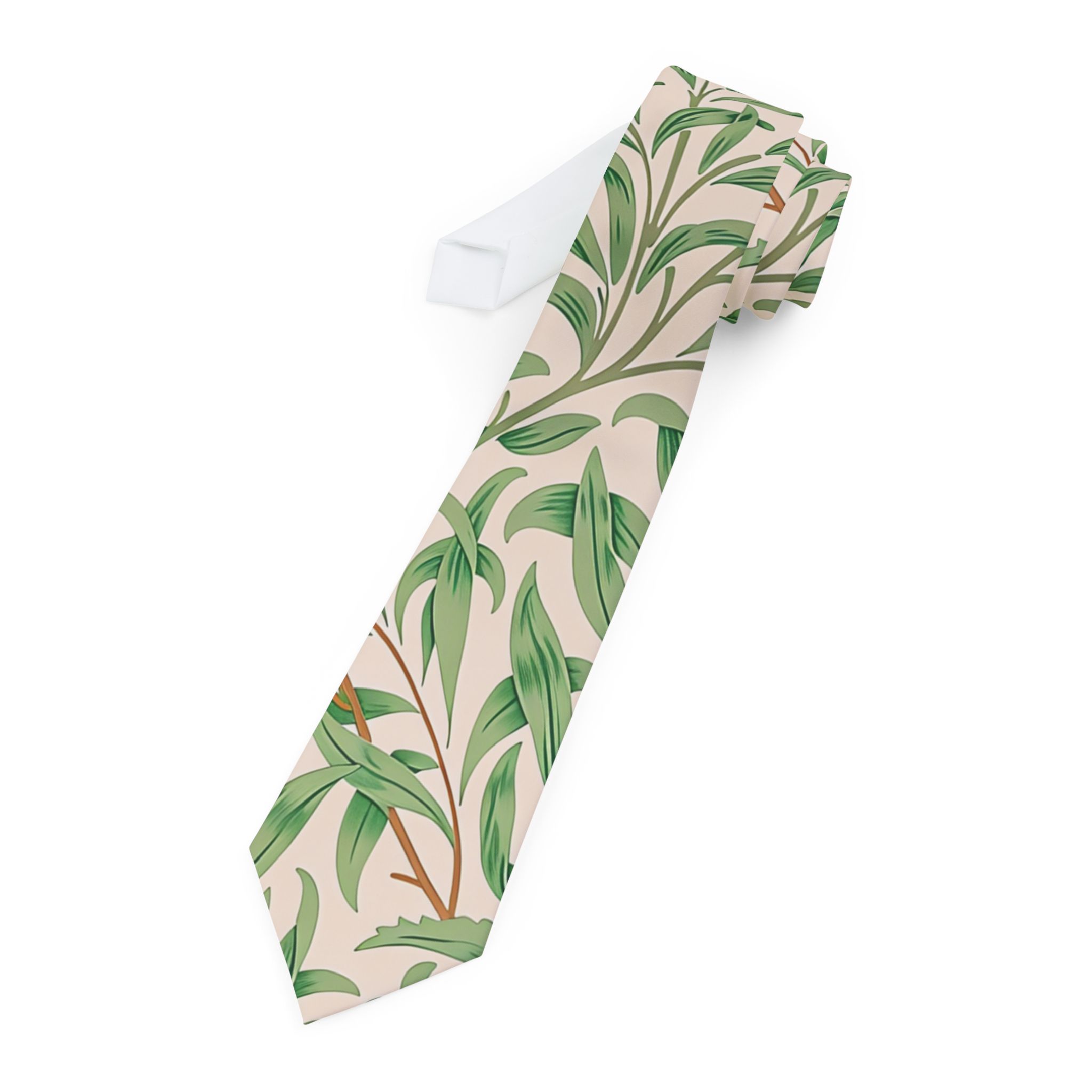 William Morris Necktie. Inspired by William Morris’s iconic ‘Willow Bough’ (1887), this necktie brings together artistic heritage and modern sophistication. The flowing green willow leaves—originally sketched from nature near Morris’s home along the Thames—symbolize renewal and quiet strength. Designed for the modern gentleman who value craftsmanship and character, tradition and individuality, This William Morris tie adds an artistic flourish to formal attire, it elevates any look with effortless distinction. A true expression of Arts & Crafts elegance, this William Morris necktie turns classic design into wearable art. It’s not just an accessory—it’s a wearable piece of Arts & Crafts heritage. D02