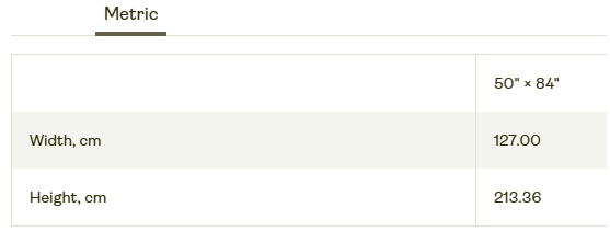 – One size: 50″ × 84″ (127 cm × 213.36 cm)