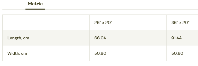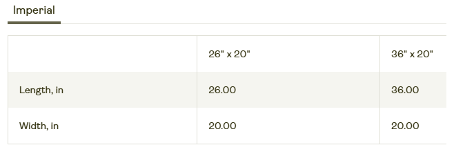 – Available in two rectangular sizes: 26″ x 20″ and 36″ x 20″