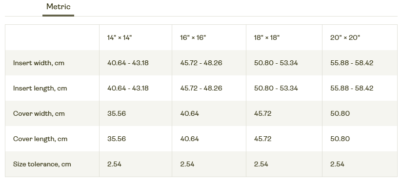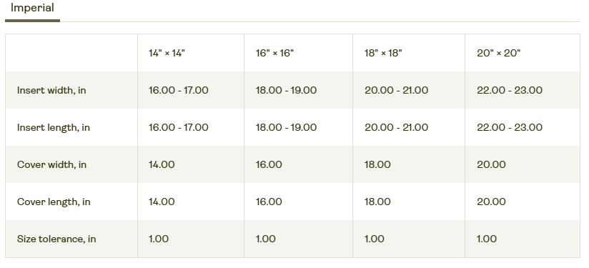 – Insert sized 2–3 inches larger than cover for fuller look