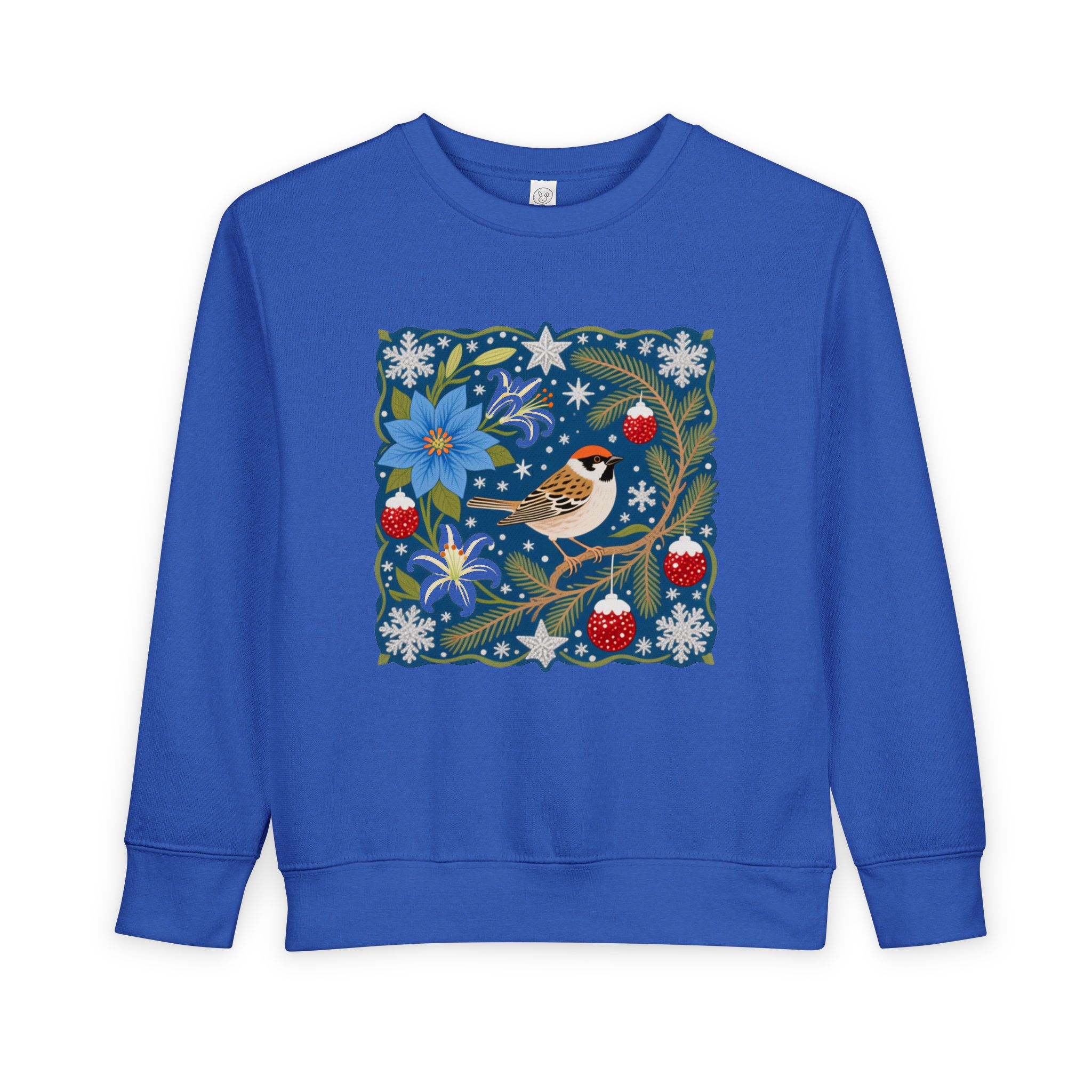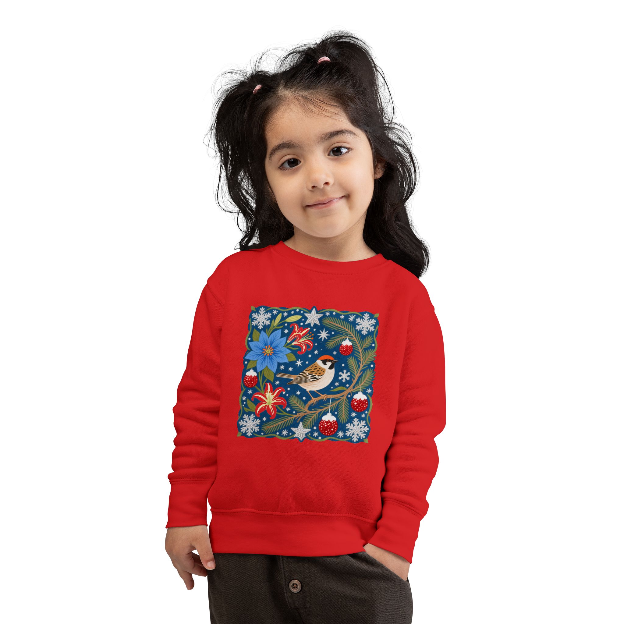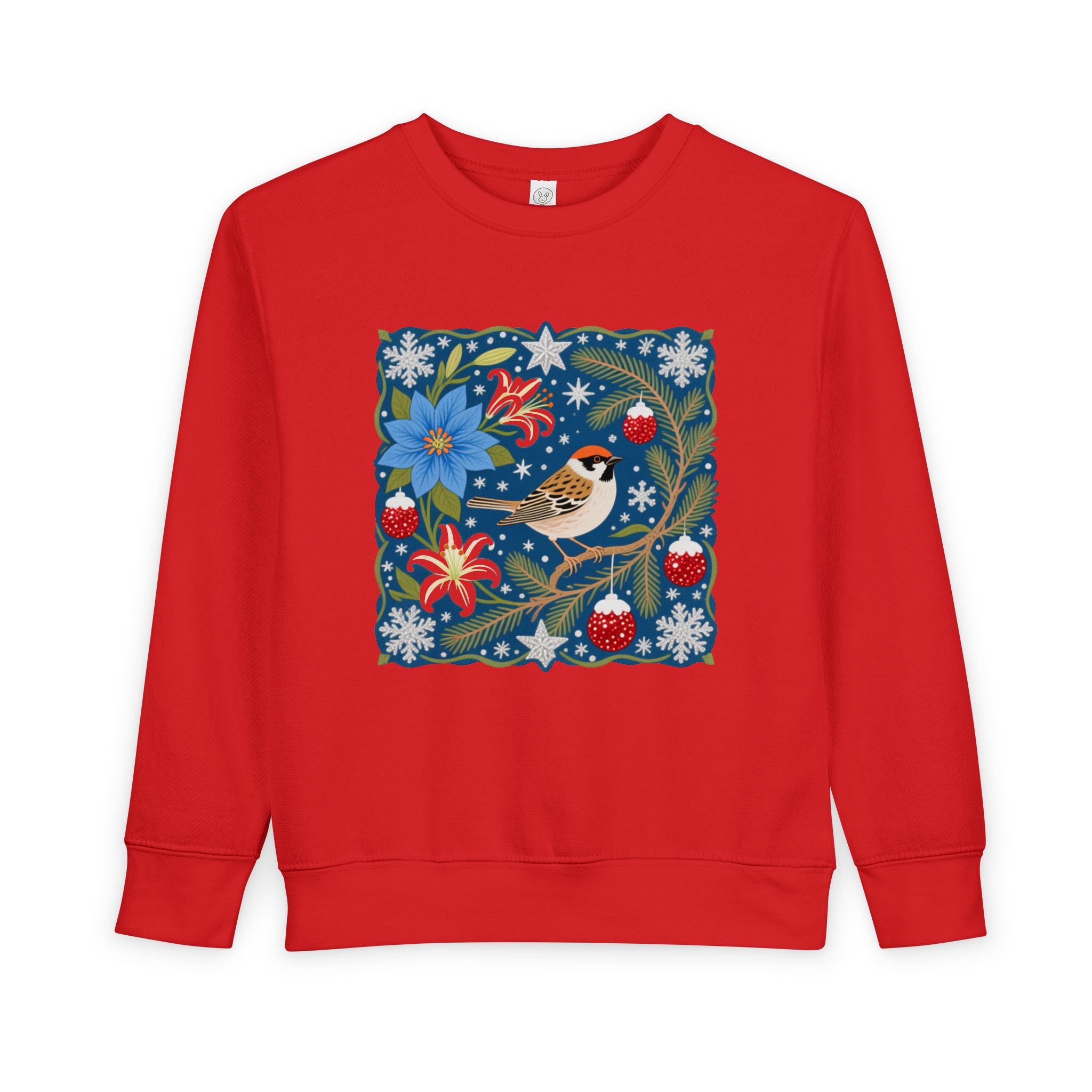 Toddler Sweatshirt — Festive Winter Bird Floral Design